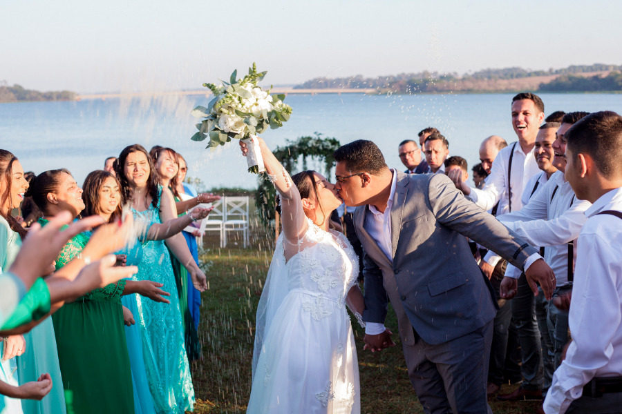5. Se for jogar arroz, jogue para cima e esparramado. Além de ser mais bonito para foto, evitará cair no ouvido de alguém.